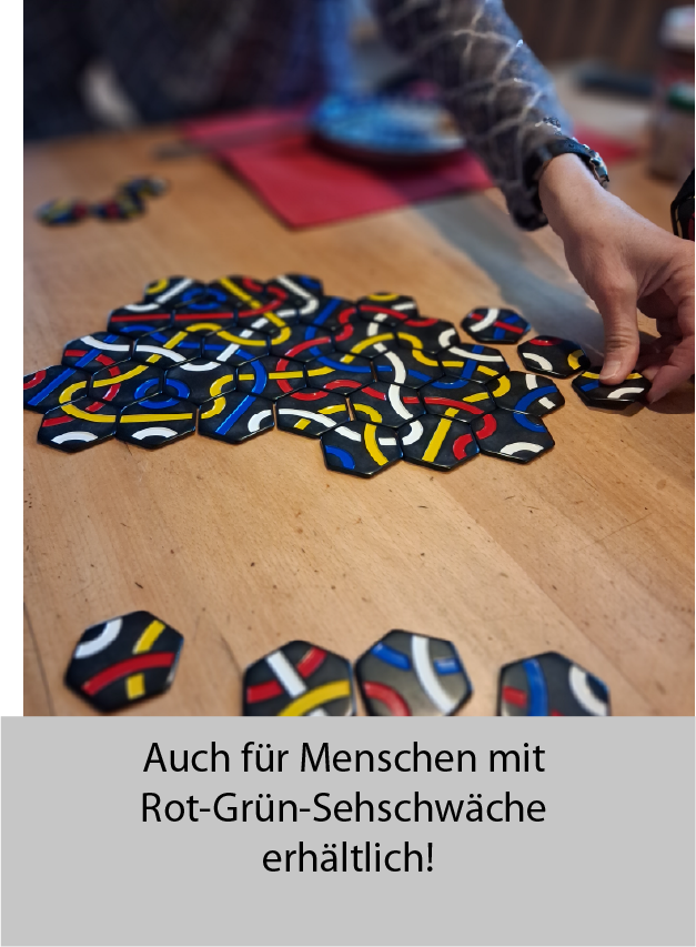 Tantrix Skake ist das verflixte Tantrix mit Linien auf beiden Seiten der Spielsteine. Das kleine Multitalent!